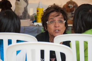 It had been a blistering hot week but for Imagine in the (Gage)Park, there had been a cooling rain the morning of the July 24th event. Gary Barwin, Jean Little, Gillian Chan, myself as well as facepainters, voice coaches, puppeteer and Frontier literacy volunteers were on the site to entertain and delight.